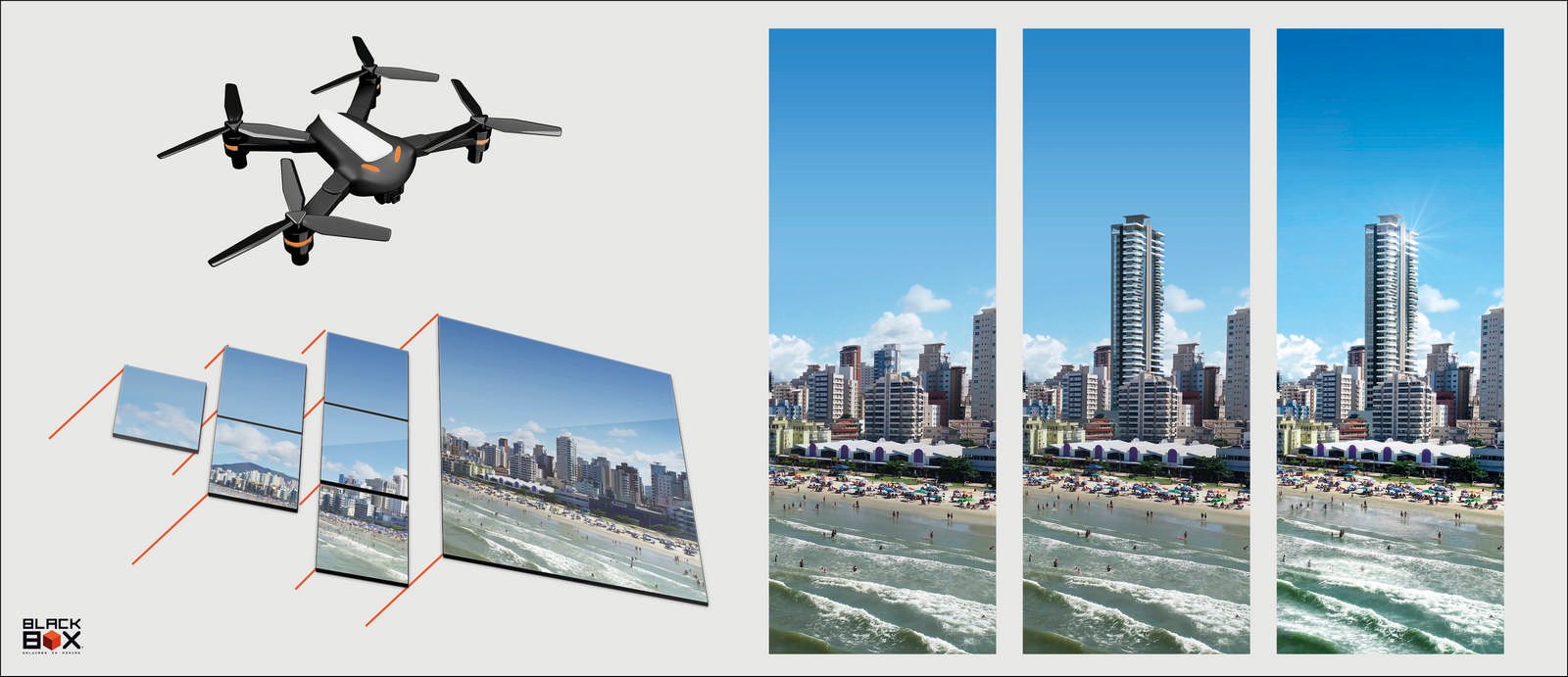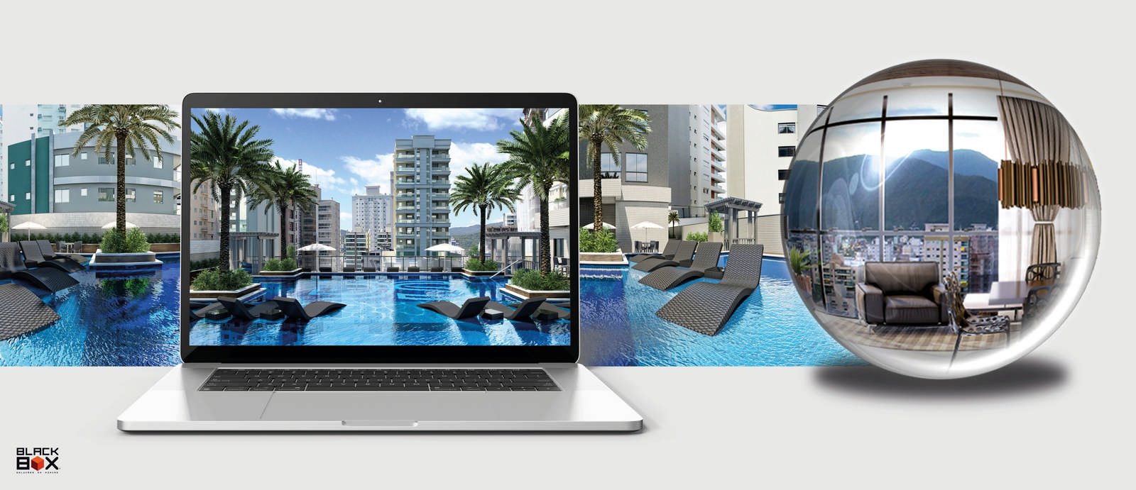 As fotos inserções e os "fundos" usados neste empreendimento derão a sensação do predio estar pronto e inserido. foram cuidadosamente pensados os ãngulos e imagens utilizados para o investidor se localizar no entorno da melhor forma.