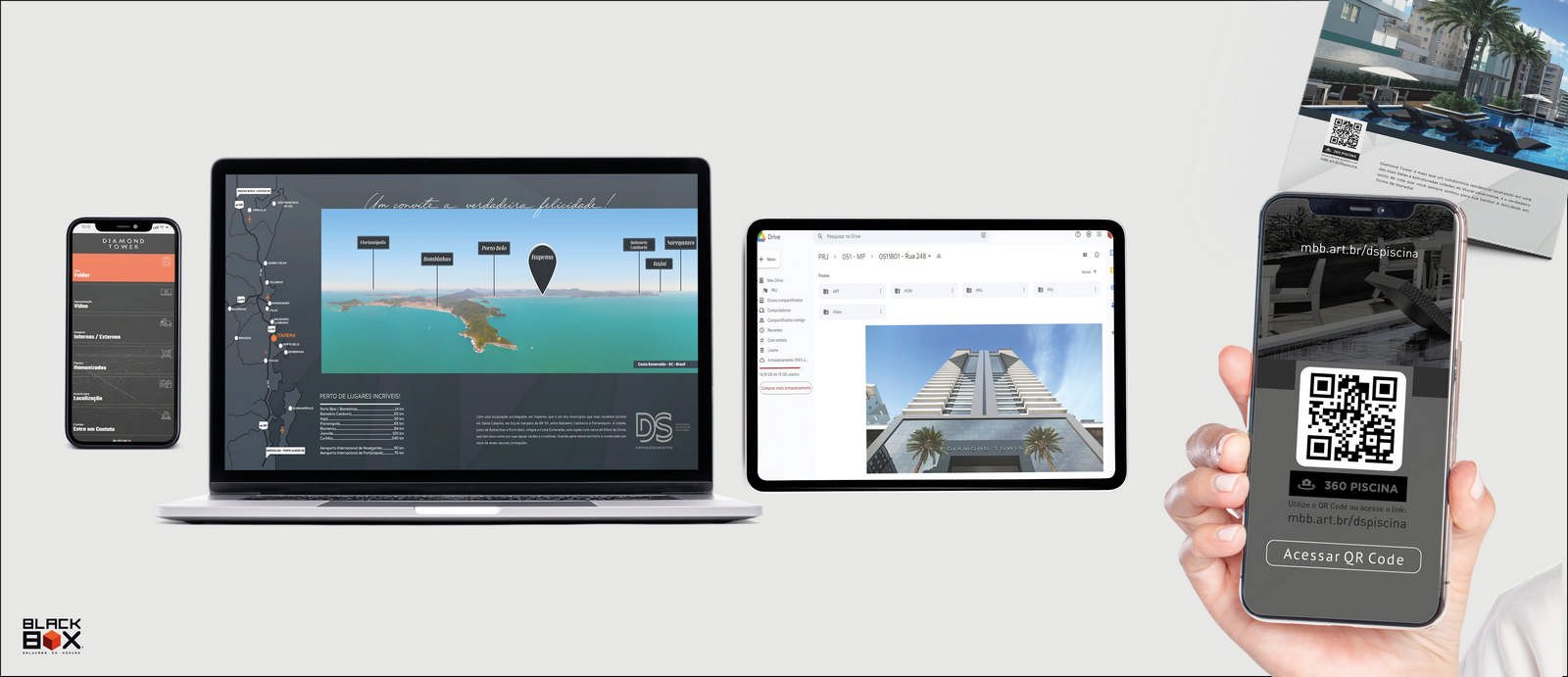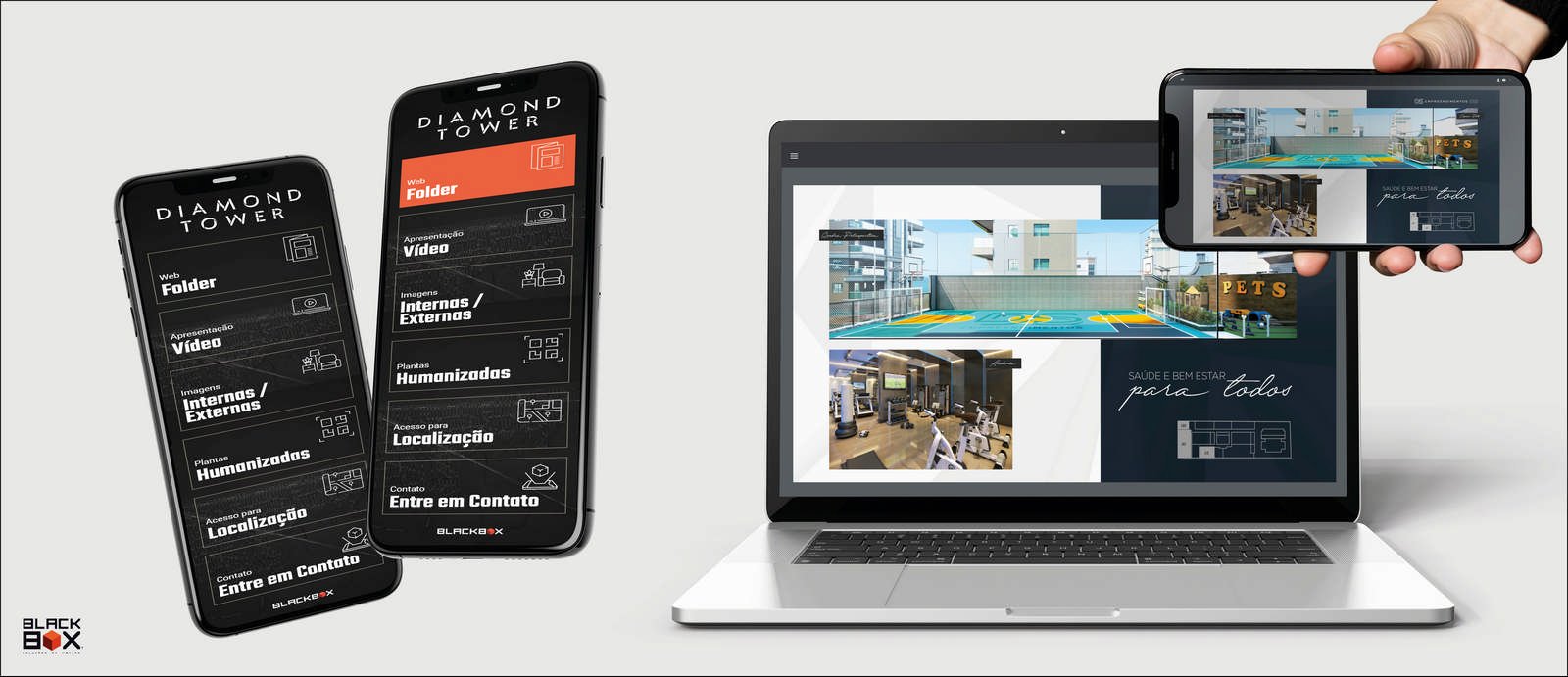 Desenvolvemos um Web Folder para o empreendimento, com todas as informações dos materiais impressos, só que apresentadas em um formato online, acessível e otimizado para diferentes tipos de dispositivos. Facilitando e aumentado drasticamente o alcance e o acesso direto com os corretores e construtoras.